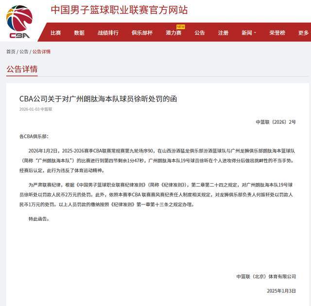 你看,咱说啥来着?杜锋爱徒徐昕如此挑衅的动作,终究是逃不过CBA官方的眼睛,在1月3日深夜开出一纸罚单,这位杜锋爱徒终究为年轻付出代价。但是,徐昕只是被罚款2万而已,并没有禁赛。外界依旧十分不满,怒斥CBA官方双标。