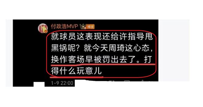 显然,付政浩认为北京队输球,周琦要负主要责任,进攻不给力,防守也不给力,特别是最后的时候,防守珀赛尔如果多向前一步,他可能就无法投进绝杀进球,而且,还不断骂骂咧咧,显然,周琦的糟糕表现坑惨了球队。 |