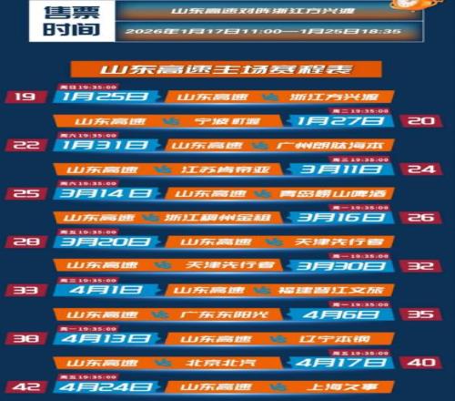 闪电体育1月17报道1月25日,山东高速男篮将重返山东省体育中心山东高速篮球馆,开启本赛季在济南的首个主场赛事,届时将与浙江广厦展开激烈对决。日前,官方售票通道已正式开启,并将持续开放至1月25日18:35。 本赛季,球票价格精心划分为ABC三个类别,以满足不同球迷的需求。其中,最高A类VIP票价位700元。而最低的惠民C类票价仅需50元,能让更多热爱篮球的观众能够亲临现场,感受比赛的激情与魅力。在接下来的常规赛中,山东高速男篮还将在主场进行13场精彩对决,对手包括浙江广厦、北京首钢、上海久事、广东宏远、辽宁沈阳三生等众多实力强劲的球队,强强对话,不容错过。