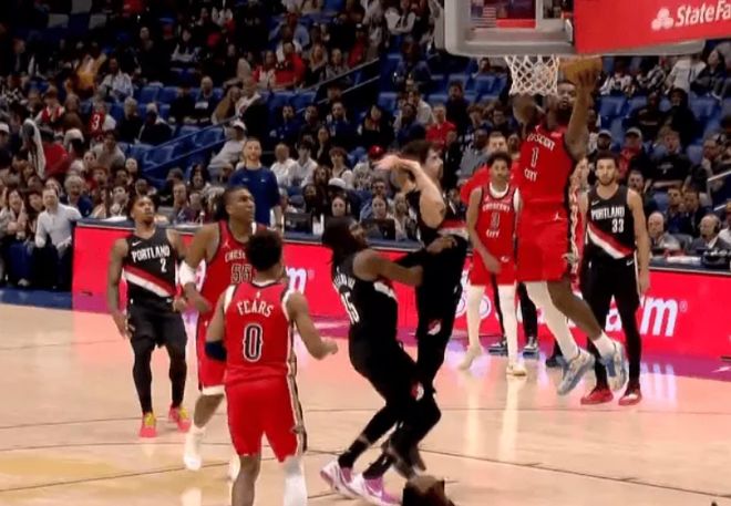 第四节决战,乐福连续投进3记三分,开拓者末节一波流领先鹈鹕21分。锡安飞身滑翔上篮连续打进,已经砍下32分,鹈鹕还剩3分钟落后开拓者14分。可惜时间不够了,最终,开拓者122-109逆转鹈鹕,送给对手6连败。