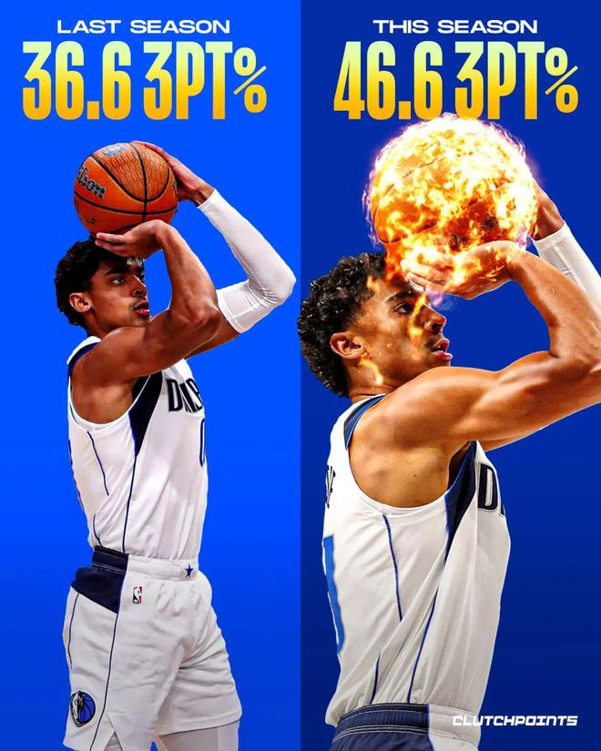 加盟独行侠之后,因为球队伤病不断,克里斯蒂得到了更多机会,得分、篮板、助攻等各项数据也随之上涨,但客观说,当时他的进攻效率并不好,比起湖人期间下滑很多。 直至本赛季,克里斯蒂的表现真的出现了蜕变,不仅得分生涯新高,效率更是惊人,有效命中率达到63.4%,真实命中率则是66.2%。 他的三分尤其疯狂,场均出手5.2次,命中率超过46%,放眼全联盟,场均出手5+三分的球员里,只有灰熊的斯潘塞(场均5.0次出手、命中率48.5%)和老鹰的克雷伊奇(场均5.8次出手,命中率46.9%)比他更准。