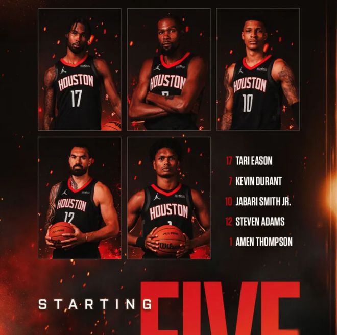 首发阵容方面,开拓者这边,伤病情况严重,格兰特、亨德森、霍勒迪、塞布尔和利拉德等多名核心球员因伤缺席,教练排出的最新首发五人组为:阿夫迪亚、夏普、西索科、卡马拉、克林根;火箭队这边,除了范弗利特之外,内线核心申京也因脚踝伤病将缺席比赛,首发阵容则为:阿门-汤普森、贾巴里-史密斯、凯文-杜兰特、伊森、亚当斯。