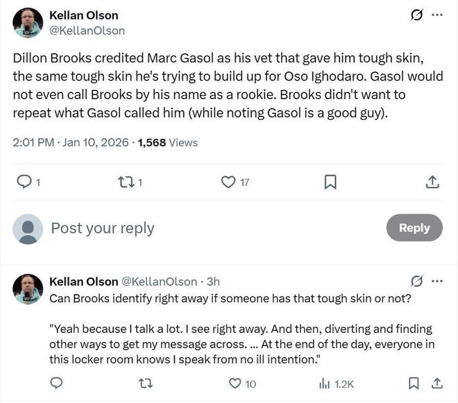 赛后狄龙采访中的一番话也解释了为何他的加入让太阳队脱胎换骨。 谈及当年为灰熊队效力,狄龙表示是小加索尔成就了自己,当初小加是队内老将,自己则是一名新秀,那时小加甚至连自己的名字都不会叫,这让自己练就了一副“厚脸皮”。 狄龙非常认可小加这一套带后辈的方式,直言他是个好人,所以自己现在正试着帮伊戈达罗养成这样的特质。