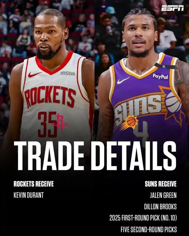 感谢火箭队!感谢杜兰特!8换1交易实现双赢送来逆袭真核,一度陷入建队两难的太阳队10战8胜已经向西部前六发起冲击。