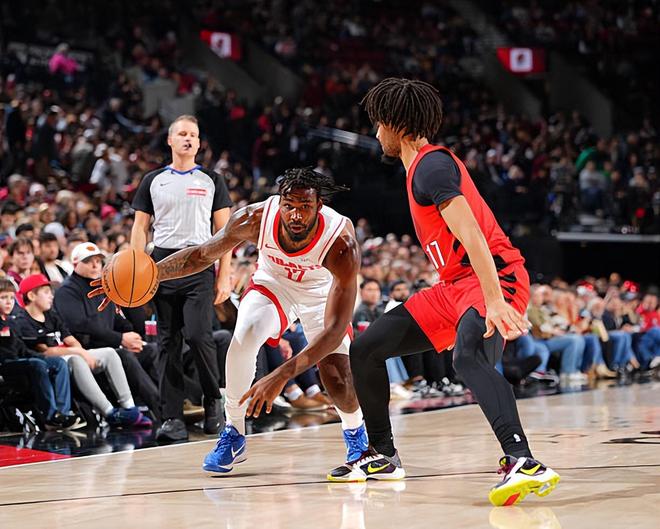 本场比赛中,火箭的先发锋线新星塔里-伊森(Tari Eason)的个人表现其实还算不错,然而他却因为脚踝伤势又一次提前离场。伊森全场出场15分32秒,投篮4中2,三分线外2中1,罚球2中1,得到了6分3篮板2助攻2抢断1盖帽的数据,还有3次失误和3次犯规,正负值为-1。伊森在进攻端出手次数不多,得到了一定的分数,但是他在失误控制方面也是存在着明显的问题的,他在进攻端多多少少显得有些不太理智。伊森在防守端的表现其实还是相当不错的,他也是能够将自己出色的个人防守能力展现出来,他在防守端的强度也是非常高的。总体来看,伊森在本场比赛中算是在攻防两端都起到了一定的作用。只是他又一次提前伤退,球队其他球员的表现又不太理想,火箭最终还是输掉了比赛。