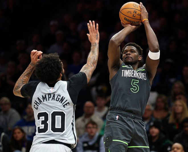 爱德华兹执行最关键的一次进攻,爱德华兹借兰德尔的掩护抛投命中,终场前16秒森林狼再度反超1分马刺这边要暂停。马刺为文班亚马画了一个绝杀战术,但顶着兰德尔罚球线绝杀不中,马刺拼下前场篮板给福克斯三分继续不中,最终马刺被森林狼逆转19分。