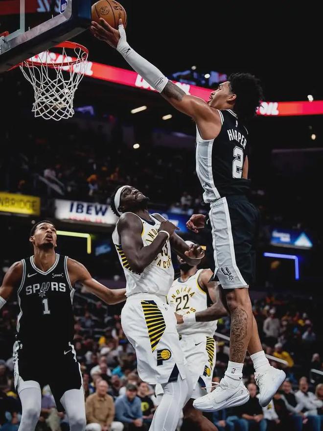 2025年选秀大会,当马刺用榜眼签选中哈珀,就有媒体担心三后卫共存问题。本赛季哈珀为马刺打了29场比赛,均是替补。场均出战21.1分钟,得到10.4分3.2篮板3.5助攻1抢断1.5失误,三项命中率:42.6%,24.7%,72.1%。