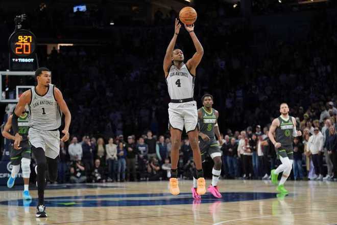进入第四节比赛,马刺维持85-76领先,并在之后维持91-82领先,文班亚马一度三分出手后踩到戈贝尔脚上摔倒,戈贝尔被吹罚赛季第6次恶意犯规将禁赛一场。戈贝尔之后还肘击文班亚马,森林狼在爱德华兹引领下多点开花,一波18-7攻势反超2分。巴恩斯三分反超1分,麦克丹尼尔斯中投命中,福克斯中投夺回领先,爱德华兹抛射再度反超1分。文班亚马投篮不中,马刺抢到篮板,福克斯三分不中,最终马刺被森林狼19分逆转击败。