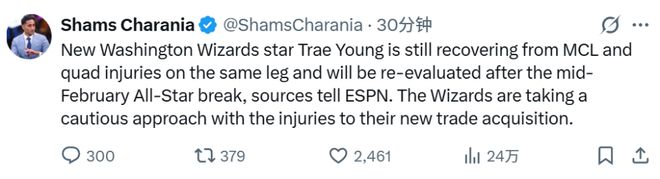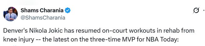北京时间1月15日,名记Shams报道了约基奇和特雷-杨的最新伤情。
