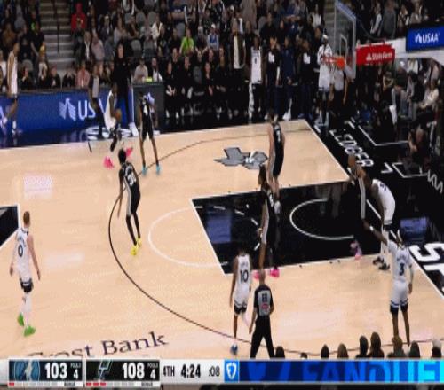 【森林狼123-126马刺】 这场比赛真的太刺激了 上半场,文班亚马一个人杀疯了! 3分线外,顶着群狼的防守,一次次硬拔,一个个大海无量般的不讲理3分,直接击穿了森林狼的心脏,半场一度领先25分。 能里能外的文班亚马实在太变态了 他打篮下,轻轻甩扣森林狼 内线瑟瑟发抖 三分线外,连珠炮弹的3分,森林狼外线 如丧考妣 又高又快又强,这还怎么防啊? 文班亚马半场仅出战14分38秒,10投6中,三分5中3,罚球9中8,砍下23分4篮板2助攻,正负值+20 文班亚马第二节单节20,历史第一的天赋,真的逆天