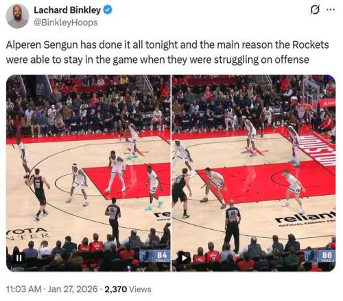 面对申京这样的表现,火箭记者Lachard Binkley连发数条推特称赞申京。 直言:“申京今晚倾其所有,当球队进攻陷入挣扎时,他是能维持住比赛局面的主要原因。”