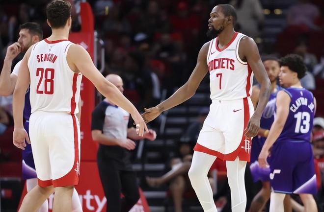 北京时间10月9日,NBA季前赛继续进行,今天杜兰特迎来加盟休斯顿火箭的首秀!他们的对手是犹他爵士队,比赛一上来杜兰特与队友还是有点不适应,前3次出手全部偏出,队员之间的配合也不是很默契,接连出现失误。爵士也抓住了机会取得了两位数领先,随着比赛深入火箭队慢慢找回感觉一波8-0将比分咬住,杜兰特首节比赛4投1中发挥一般,火箭以23-25落后进入第二节。而后杜兰特展现出了历史级适配能力,个人连续进攻得分,中投+三分样样齐全,火箭年轻球员也打出了极强的冲击力,申京、阿门汤普森都打出了高质量比赛,火箭单节轰出44-36的得分一举反超比分!下半场火箭的进攻依旧打得行云流水,申京尽显组织能力。不过爵士毫不示弱外线连续命中三分紧追不舍,最后一节两队派遣替补出战,火箭进攻依旧是全面开花,最终火箭140-127击败爵士。