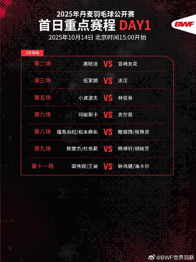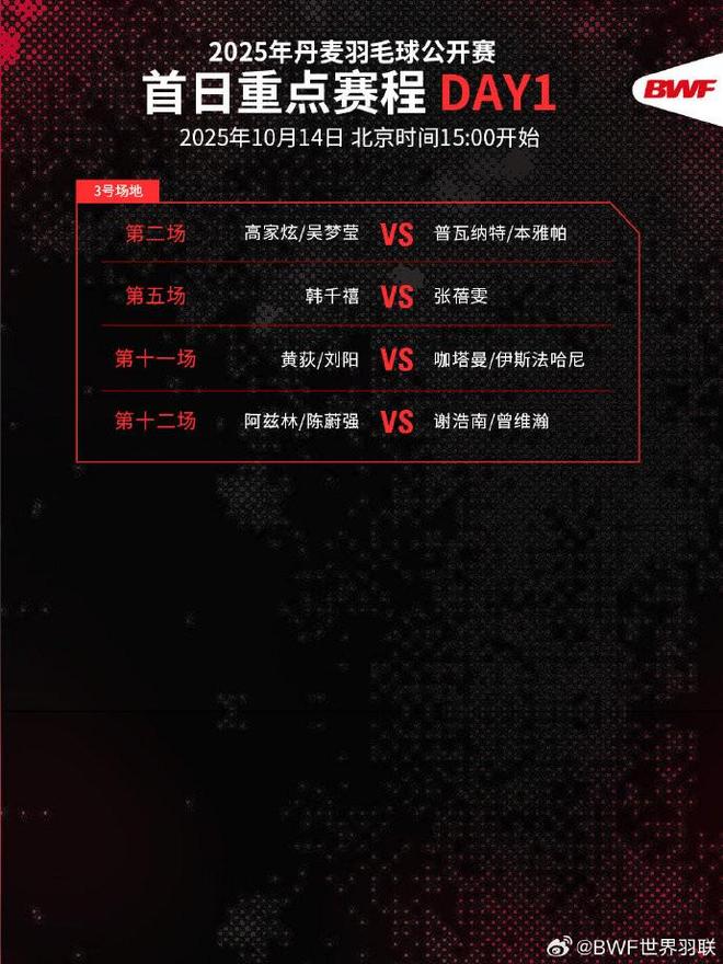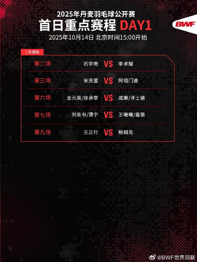 丹麦羽毛球公开赛今日打响,石宇奇迎来世锦赛后首次亮相