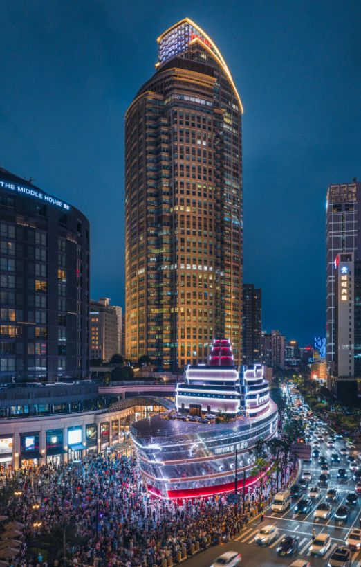 再往西,上海恒隆广场、中信泰富广场、锦沧文华广场等繁华商业地标一字排开,国际大牌橱窗琳琅满目。上海展览中心、静安寺等标志性建筑错落于摩天楼宇间,千年古刹飞檐斗拱与现代商圈相映成趣。