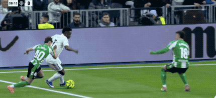 皇家贝蒂斯在多线作战的情况下,依旧保持了不错的势头。最近20场各项赛事,贝蒂斯仅仅输给了巴萨和马竞,球队暂时排在积分榜的第六位。 本场比赛,姆巴佩因伤缺阵,贡萨洛·加西亚首发出场。开场之后,维尼修斯就在右路多次过人成功,贝蒂斯防线明显顶不住。