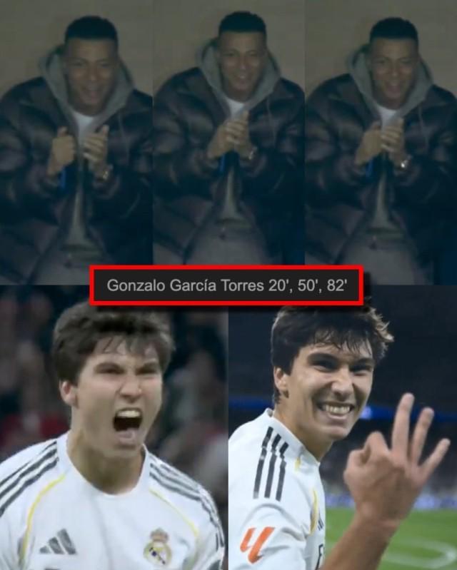 贡萨洛戴帽,姆巴佩在看台拍手叫好 西甲 01-05 01:46 皇马5比1贝蒂斯,大演帽子戏法的贡萨洛·加西亚是绝对主角。全场他射门3次,全部转化为进球!且3粒进球各具特色——后点头球吊射、胸停凌空世界波、抢点脚后跟巧射——完美展现其全能性和可塑性。去夏世俱杯贡萨洛就已一鸣惊人,夺得赛事金靴,但皇马大牌众多,赛季开始后他只能与板凳为伍。此番姆巴佩受伤,贡萨洛得以第2次代表皇马联赛首发(上一次对西班牙人,与姆巴佩搭档双前锋),便贡献了如此炸裂演出,甚至看台上的姆巴佩也情不自禁一再为他鼓掌。