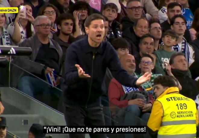 对阵贝蒂斯比赛中,阿隆索场边高声要求维尼修斯提升逼抢强度