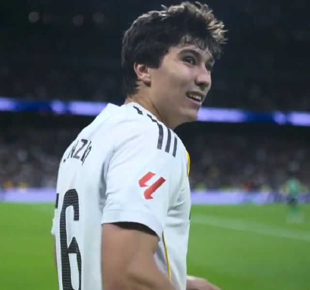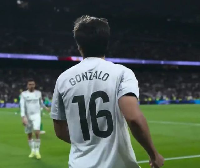 这2个进球,已经让现场的球迷和场边的阿隆索拍手叫绝,但是相比之下,贡萨洛-加西亚的第3个进球,更是让人叹为观止。第82分钟,居莱尔在禁区内横传到门前,贡萨洛-加西亚竟然用脚后跟把球磕进死角,这样匪夷所思的进球,伯纳乌已经多时未见,这绝对是一个足以竞争本赛季西甲最佳进球的进球。