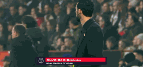 第6分钟,镜头给到场边,皇马新帅阿韦罗亚现场执教