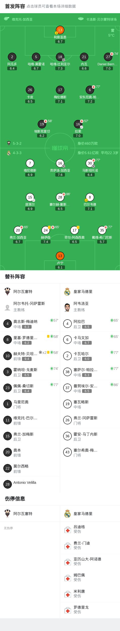 第43分钟,先丢一球,比利亚尔头球破门,皇马0-1