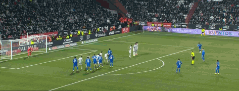 第10分钟,居莱尔任意球直接攻门,皮球高出横梁