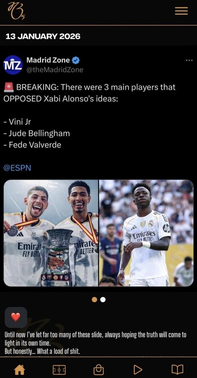 面对这一报道,贝林厄姆在个人应用 JB5 上做出了强硬回应:“迄今为止,我对这类事情一直睁一只眼闭一只眼,总盼着真相能水到渠成地浮出水面。但说实话…… 这纯属一派胡言。真为那些对这些跳梁小丑及其所谓‘消息源’言听计从的人感到悲哀。别轻信你读到的所有东西 —— 时不时地,就得让这帮人为了博眼球、炒热度,散布这种具有破坏性的虚假信息而负责。”
