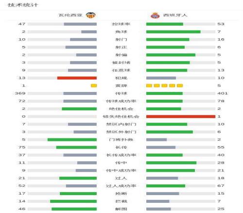 第15分钟,瓦伦西亚球员卢卡斯-贝尔特兰助攻杜罗打入一球。 第54分钟,西班牙人球员基克-加西亚助攻拉蒙-特拉茨打入一球。 第59分钟,瓦伦西亚球员丹朱马助攻居马尔特打入一球。 第79分钟,瓦伦西亚球员科佩特自摆乌龙。 下半场补时第4分钟,瓦伦西亚球员拉马扎尼罚入点球。 球队阵容 技术统计 |