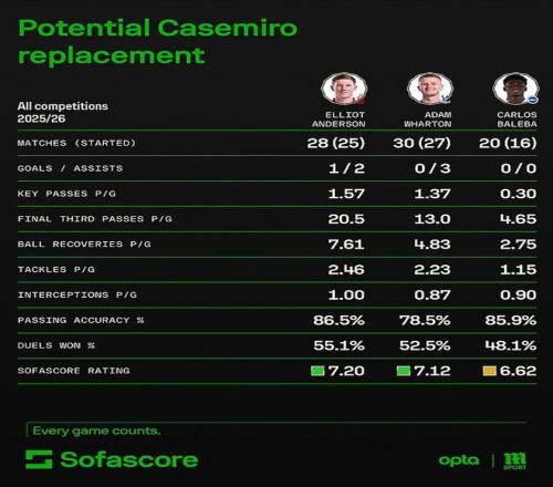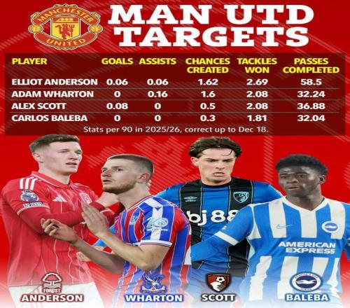 沃顿预计将在夏季被水晶宫出售,利物浦据说优先考虑引进他。因此,曼联亦将无法轻易得到这位英格兰国脚,但俱乐部认为比起安德森,同时得到沃顿和巴莱巴的机会更大。 即便在足球游戏中,曼联也不大可能同时签下这些球员。据英媒报道,俱乐部内部已经就夏窗计划进行讨论,不管主帅是卡里克还是别人,吉姆·拉特克里夫爵士的英力士管理团队准备签下至少两名中场新援,外加一名左边锋。转会主管克里斯托弗·维维尔,负责主要工作。 取决于能否进入欧冠,以及其他的中场球员,尤其是鲁本·阿莫林的嫡系乌加特的去留,曼联甚至可能签下三四名新中场!两个是主力,另一个为较为便宜的轮换球员。 曼联的其他目标,还包括埃弗顿的詹姆斯·加纳、伯恩茅斯的泰勒·亚当斯、狼队的若昂·戈麦斯、桑德兰的诺亚·萨迪基和哈比布·迪亚拉、西汉姆联的马特乌斯·费尔南德斯等。 曼联原计划在摩纳哥召开高管会议,但现任主帅卡里克觉得,自己有重要的训练任务在身,就没必要远赴法国南部。红魔在伦敦进行了闭门会谈,卡帅向老板表示,自己将采取不同的训练和赛前准备方式。