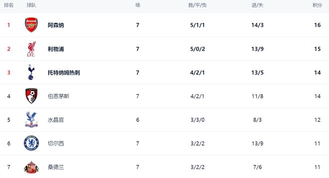 英超第7轮进行了多场比赛,各有悲喜。热刺征服了客场,以2-1险胜利兹联。这场比赛热刺在第23分钟率先进球。特尔杀入禁区,起脚射门,皮球被挡折射入网。随后,奥卡福尔帮助利兹联扳平比分。下半场库杜斯内切远射打进,完成传射的数据。皮罗埃随后有绝平的机会,只可惜他的射门被门将神奇化解。热刺最终有惊无险拿下比赛。 曼联在主场完胜桑德兰。这场比赛曼城很快就进入状态。芒特在第8分钟就打进一粒非常漂亮的进球。之后谢什科门前抓住机会进球扩大比分。最终的比分定格为2-0,曼联全取3分。而桑德兰本场比赛8次射门都没有进球。这场胜利让阿莫林暂时松了一口气,毕竟他面临下课危机,需要用胜利来保住自己的帅位。 阿森纳也在主场取得一场胜利,以2-0击败了西汉姆联。赖斯在第38分钟推射破门,攻破了老东家的大门。这粒进球让阿森纳踢得更加从容。在第65分钟,萨卡点射破门,扩大比分。西汉姆联全场被动,只有可怜的4次射门,没能够射正,根本无法给阿森纳制造任何难题。赢下这场比赛意味着阿森纳各项赛事取得4连胜。 切尔西则在主场上演极限绝杀,击败了利物浦。这场比赛切尔西率先进球。凯塞多在第14分钟就轰出一脚无解世界波。加纳乔有扩大比分的机会,只可惜他的远射击中了立柱。下半场利物浦不断换人调整。在第63分钟利物浦终于进球了。加克波门前捅射打进,扳平比分。补时阶段,埃斯特旺站了出来,打进绝杀进球!主场球迷狂欢!最终的比分定格为2-1,切尔西笑到了最后。利物浦联赛两连败。 在积分榜上,赢球的阿森纳登上了榜首位置。阿森纳5胜1平1负,拿到了16分。利物浦这轮落败,依然是15分,排名第2。热刺以14分排名第3。伯恩茅斯这匹黑马也是14分,排名第4。水晶宫以12分排名第5。切尔西和桑德兰都是11分。曼城和曼联则都是10分。 |