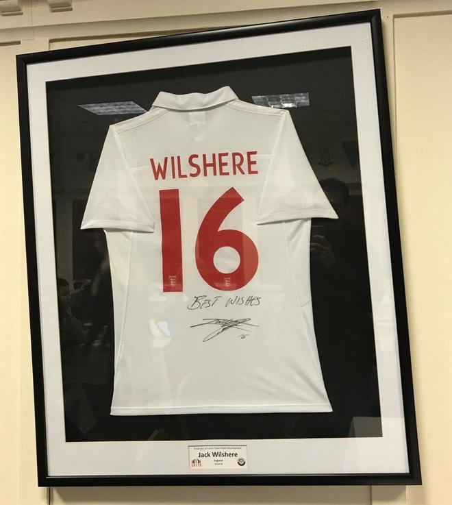 出自卢顿青训,卢顿主场挂着威尔希尔完成英格兰队首秀的球衣