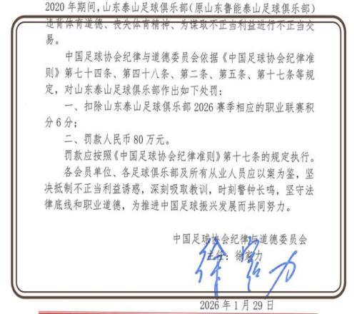 在这份长长的名单上,没有任何一支球队值得同情。看看这些球队,哪一支不是历史悠久、荣誉加身呢。他们是联赛的绝对主力,本应该承担起更重的责任和担当,但是最终却选择了这条路。 这些球队烂了,中超的半壁江山也就倒了,但是却也找到了国足过去十几年里,为什么成绩拉胯的关键,为未来中国足球的发展奠定了血的教训。 然而,纵然是各种雷霆处罚令这些球队喘不过气,但是日子终究还是要前进。 山东泰山被扣掉了6个联赛积分,同时被罚80万。作为专项整治的主要球队之一,这样的处罚已经完全可以接受了。从之前的首批处罚名单,再到如今的第二批,各种细节和问题全部曝光。